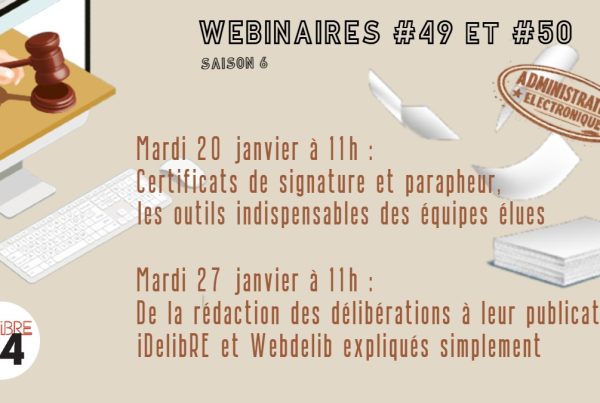 - Mardi 27 janvier à 11h : De la rédaction des délibérations à leur publication, iDelibRE et Webdelib expliqués simplement